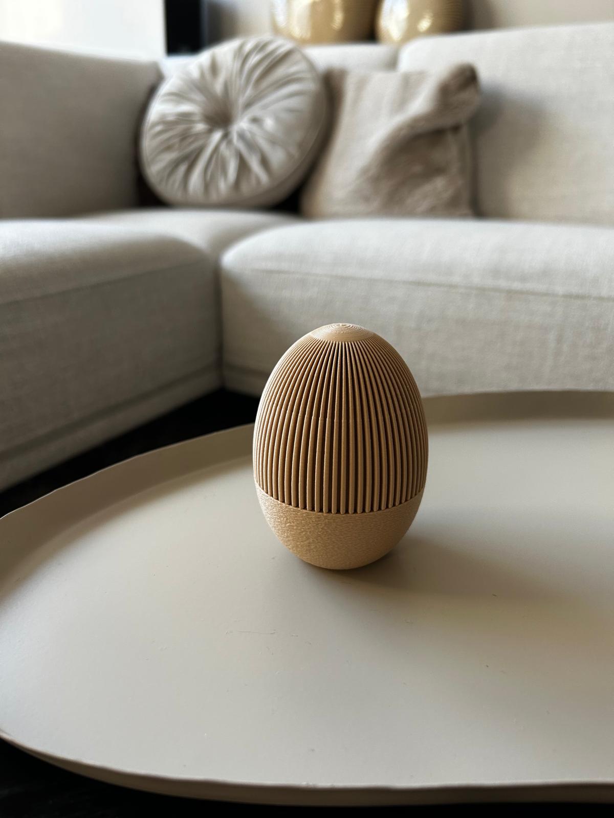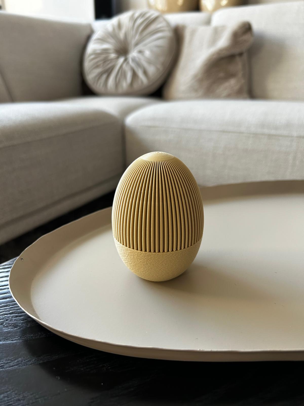 Breng stijl én functie samen met dit gestreepte paasei met opbergfunctie. Dit 3D-geprinte ei heeft een elegant streeppatroon en kan eenvoudig worden geopend, zodat je het kunt vullen met chocolade-eitjes, snoep of andere lekkernijen.