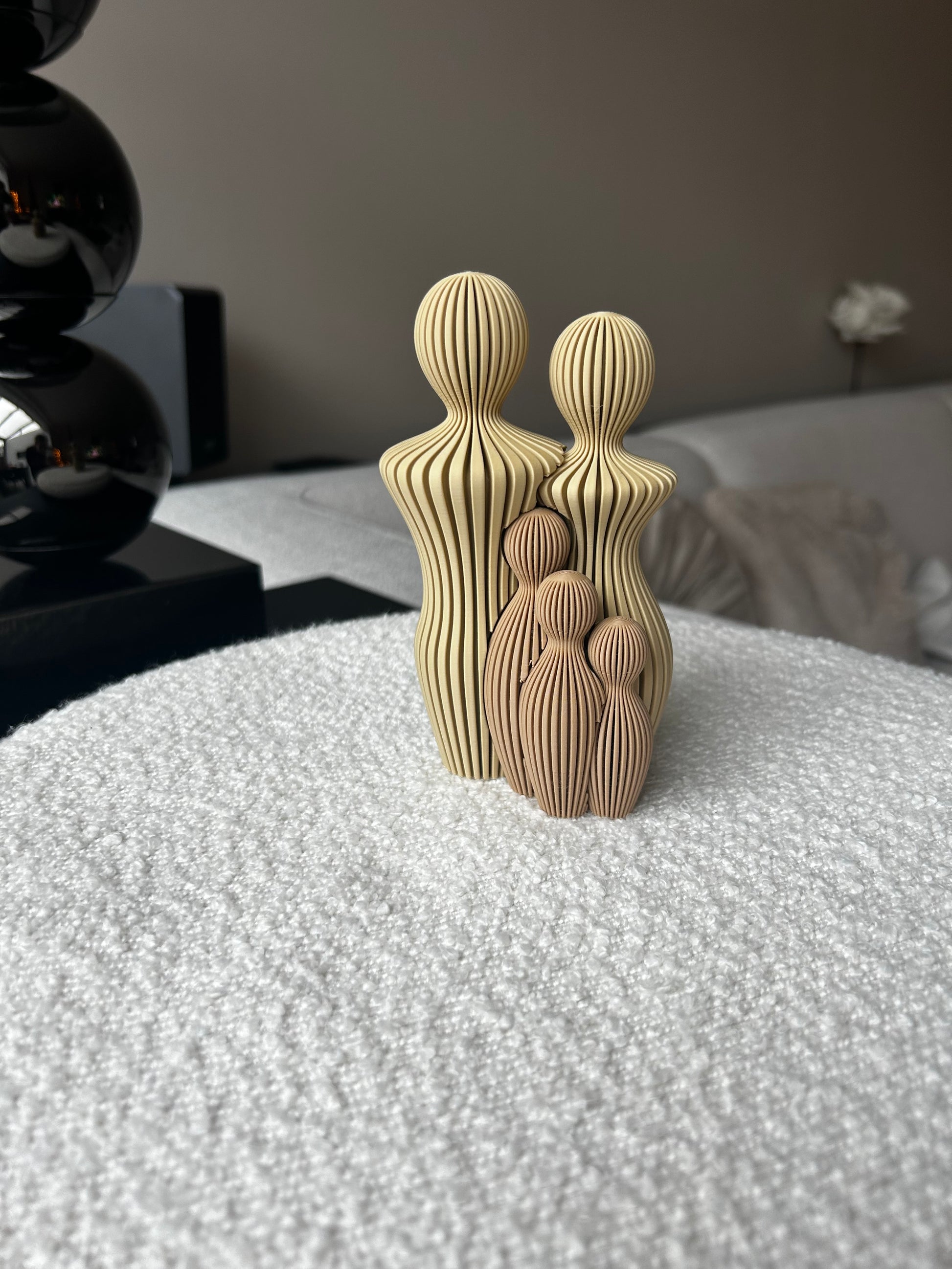 Dit unieke beeldje is volledig op maat te maken en symboliseert de verbondenheid van jouw familie. Elk detail wordt zorgvuldig geprint met moderne 3D-techniek, waardoor het een stijlvol en persoonlijk decoratiestuk wordt dat zowel een eyecatcher in huis als een waardevol aandenken is.