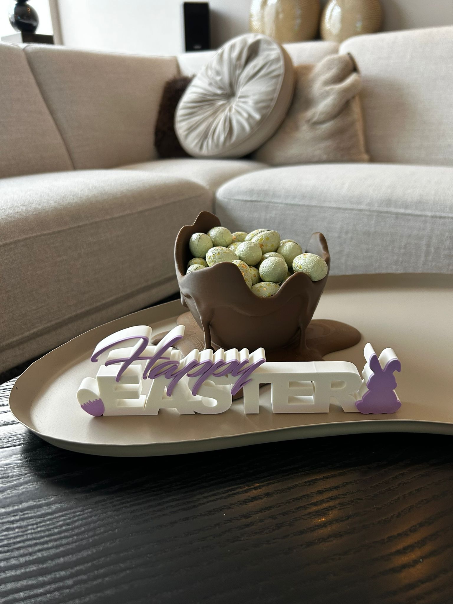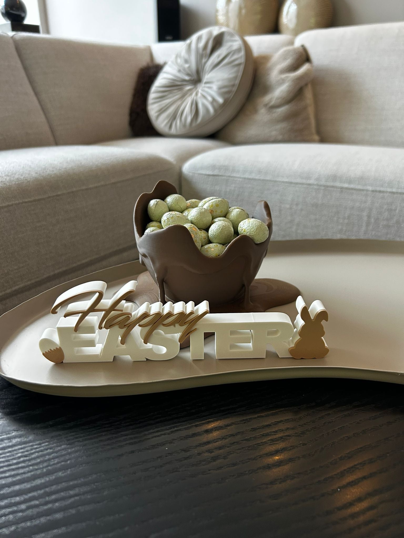 Breng direct een vrolijke paassfeer in huis met deze 3D-geprinte “Happy Easter” tekst, van 21 cm compleet met een schattig eitje en een lief paashaasje. De speelse details maken deze decoratie een echte eyecatcher en zorgen meteen voor een warm en feestelijk gevoel.