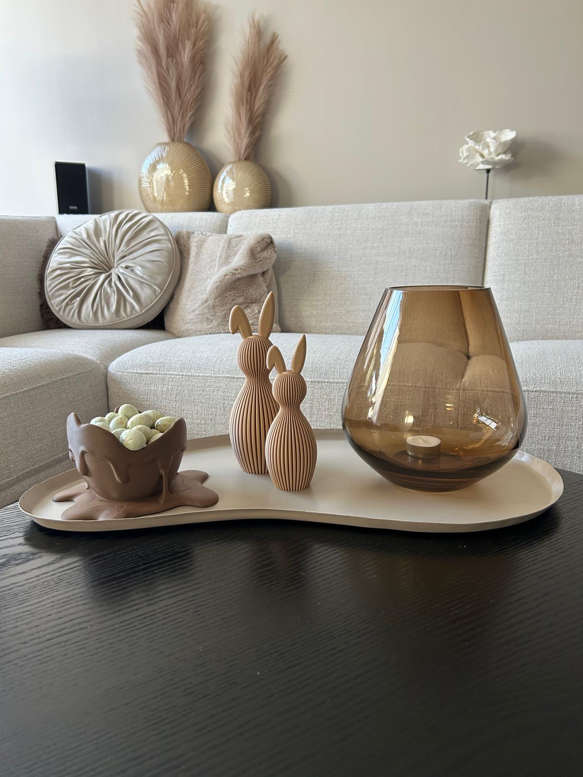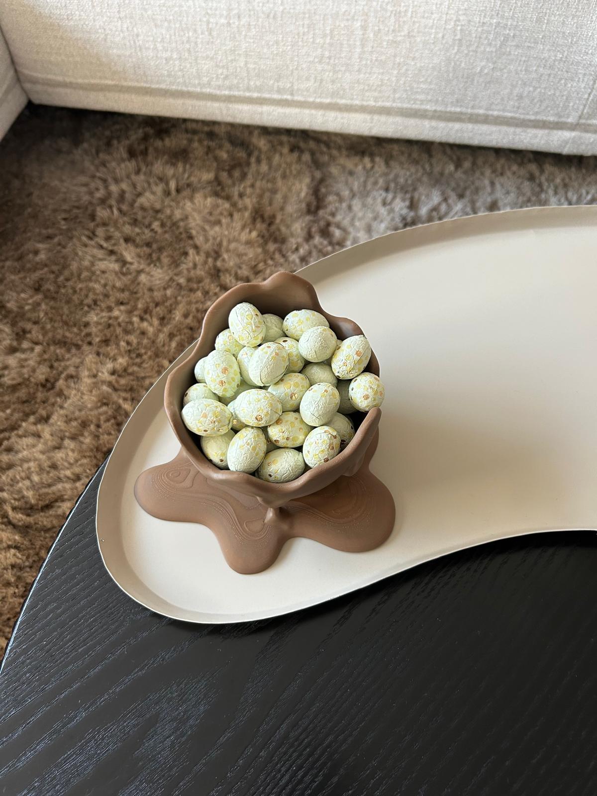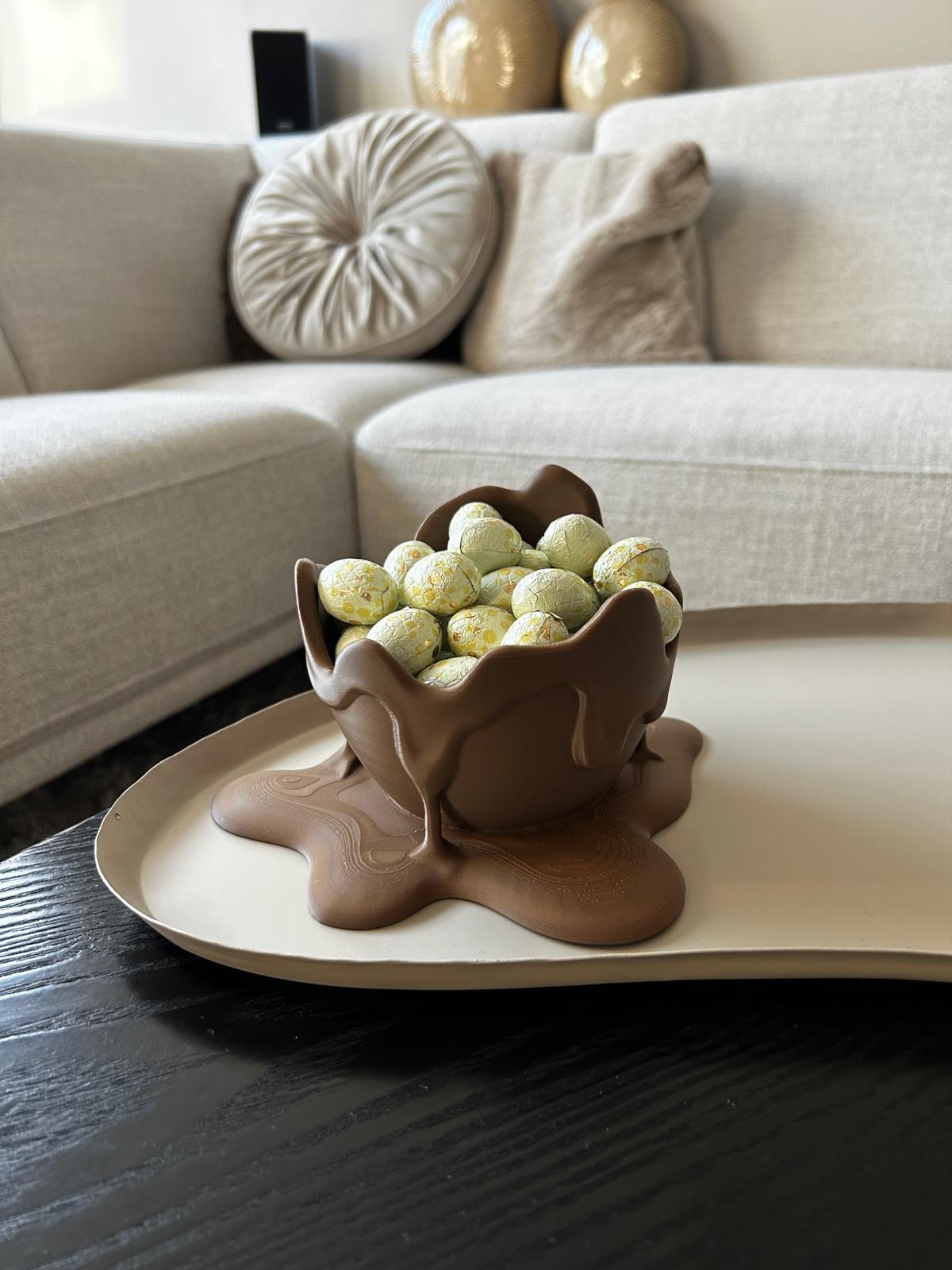 Dit 3D-geprinte gesmolten chocolade-ei is een echte blikvanger voor jouw paasdecoratie. Het unieke ontwerp lijkt alsof het ei net is gesmolten, wat zorgt voor een speels en creatief effect met een luxe uitstraling.