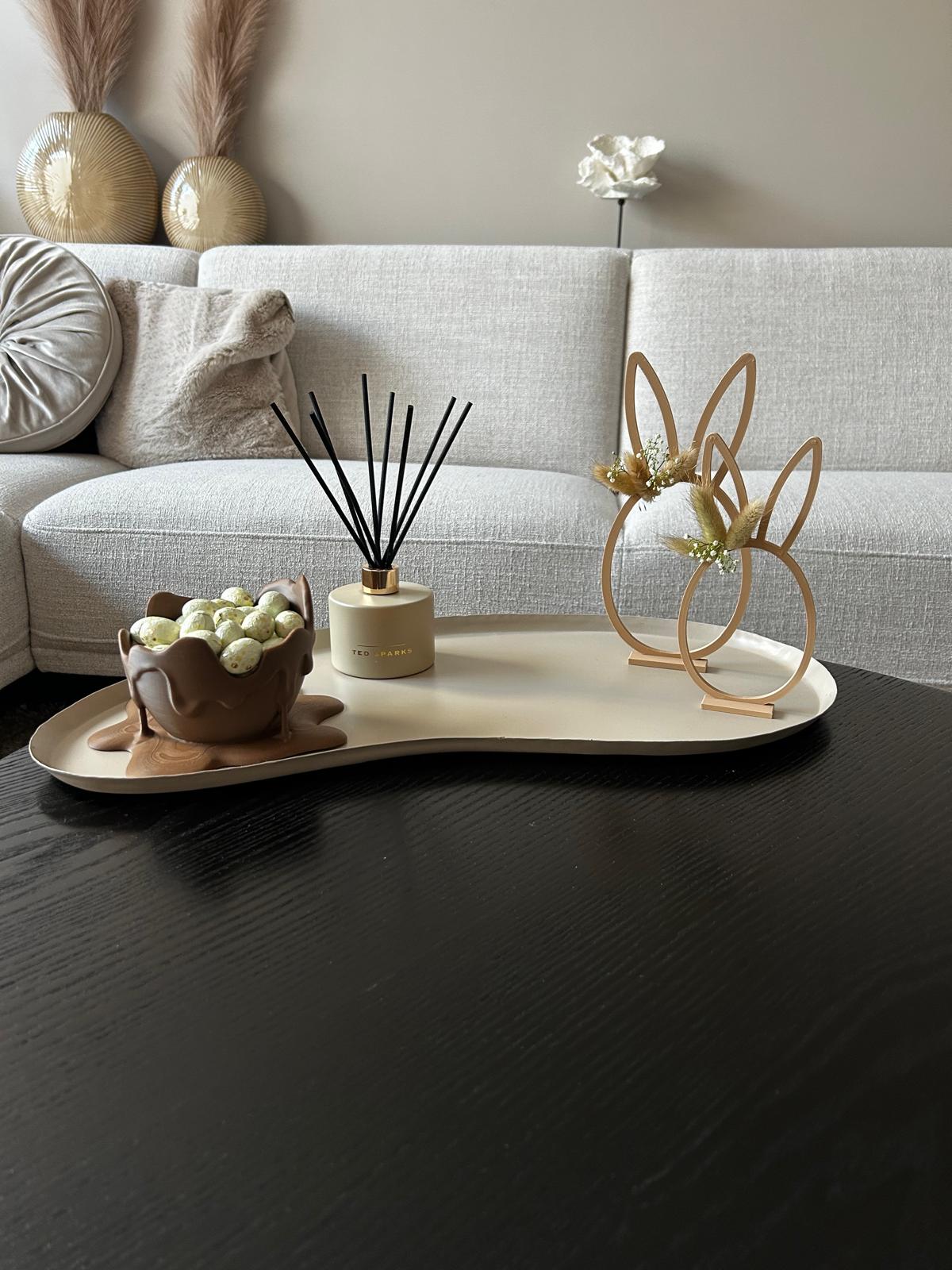 Het ei is niet alleen decoratief, maar ook functioneel: gebruik het als bakje voor chocolade-eitjes, snoepjes of kleine paaslekkernijen. Perfect voor op de paastafel, een dressoir of in je koffie- of keukenhoek.